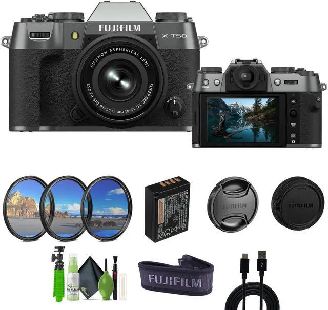 Fujifilm X-T50 Mirrorless Digital Camera XC15-45mmF 3.5 - 5.6 OIS PZ Lens Kit - Charcoal Silver