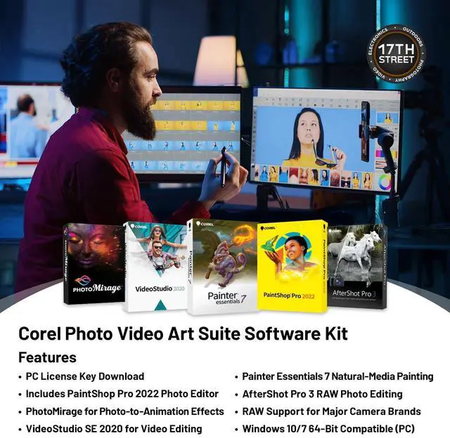 - Includes PhotoMirage, VideoStudio, Painter, PaintShop Pro & AfterShot Pro