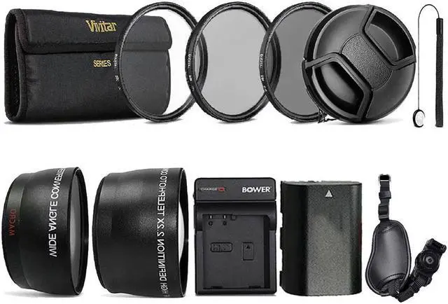 The 58mm Wide Angle Lens is a wide angle lens attachment for cameras with 58mm filter threads. It offers a much wider angle of view than the camera's lens capability. The Telephoto Lens Attachment for 58mm Filter Thread is a telephoto lens attachment for cameras with 58mm filter threads. It offers a much narrower angle of view than the camera's lens capability New Bower VFK58C Video Filer kit This 58mm Digital Filter Kit includes an ND4 filter, a circular polarizer filter, and a UV filter. The Replacement Battery for Canon LP-E6 replaces the Replaces the Canon LP-E6.