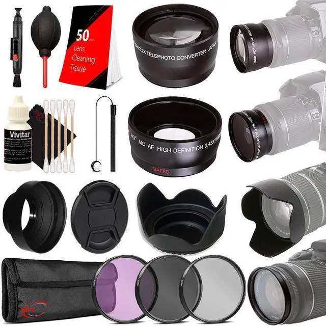 52MM Telephoto & Wide Angle Lens 3pc Filter Kit Lens Cap Lens Pen Dust Blower 50 Lens Tissue Lens Cap Holder 3pc Cleaning Kit