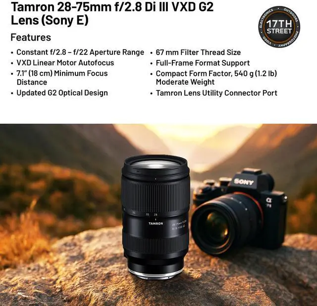 - Tamron 28-75mm f/ 2.8 Di III VXD G2 Lens (Sony E)