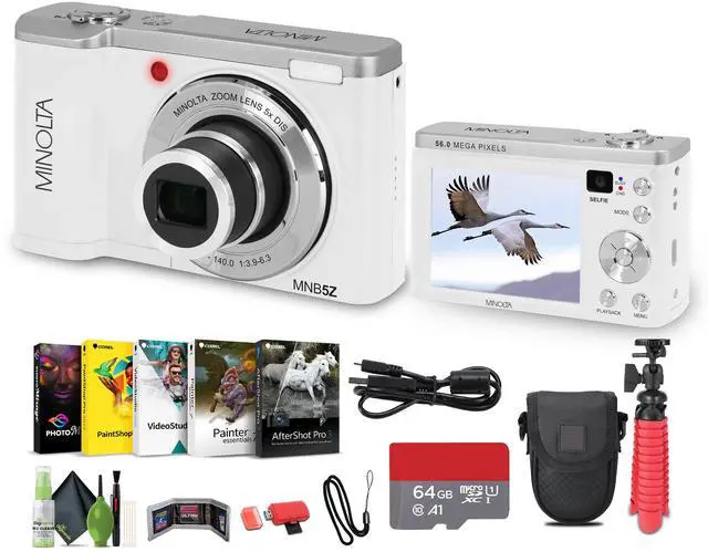Minolta MNB5Z 56MP Dual Lens Point & Shoot Digital Camera with 5X Optical Zoom & 5K Ultra HD Video (White)