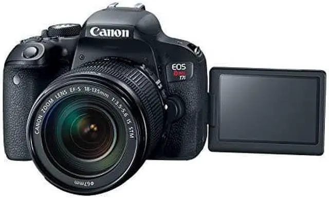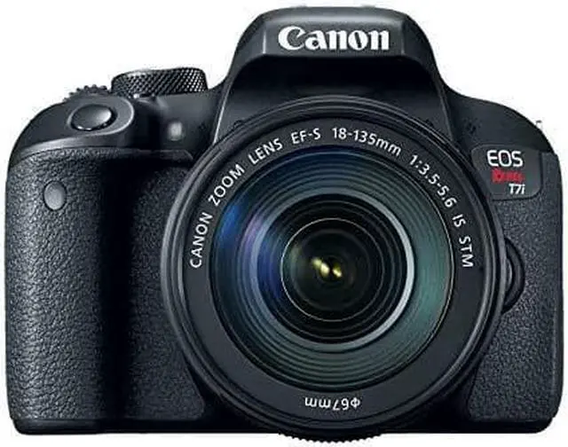 Take your photos to the next level with the image quality and near-instant autofocus of the'Canon EOS Rebel T7i Digital SLR Camera with 18-135mm Lens. A 45-point all cross-type AF system and optical viewfinder lets you stay ready for that unforgettable moment with virtually no lag between what you see and what you get when you press the shutter. Fast and accurate Dual Pixel CMOS AF with phase-detection locks focus quickly and accurately to help make sure you don? t miss a great shot. A 24.2 Megapixel CMOS (APS-C) sensor helps you capture special moments from vacations to family events in brilliant color, detail and vibrancy for beautifully memorable photos and videos.
