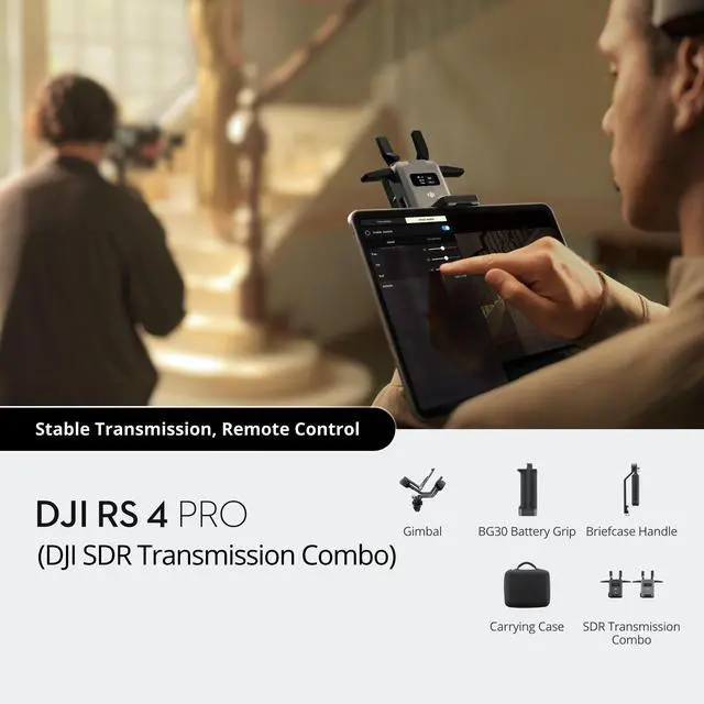 The DJI RS 4 Pro standalone version includes the BG30 Battery Grip, Quick-Release Plate (Arca-Swiss/Manfrotto), Briefcase Handle, Carrying Case, and other practical accessories. The DJI RS 4 Pro Combo includes additional accessories such as the Ronin Image Transmitter and Focus Pro Motor, helping cinematographers effortlessly achieve integrated stabilization, transmission, and control in creative work.
