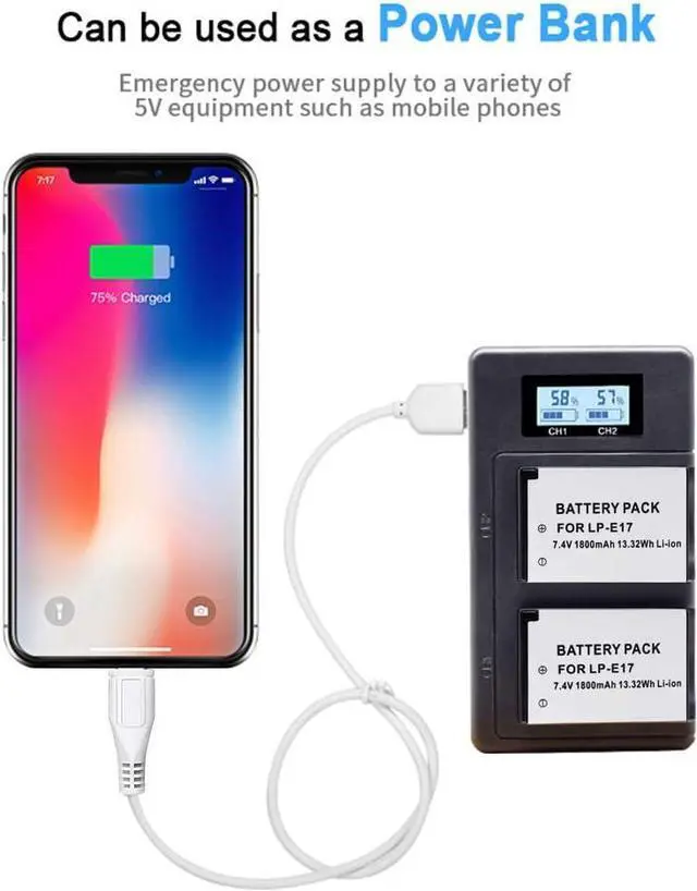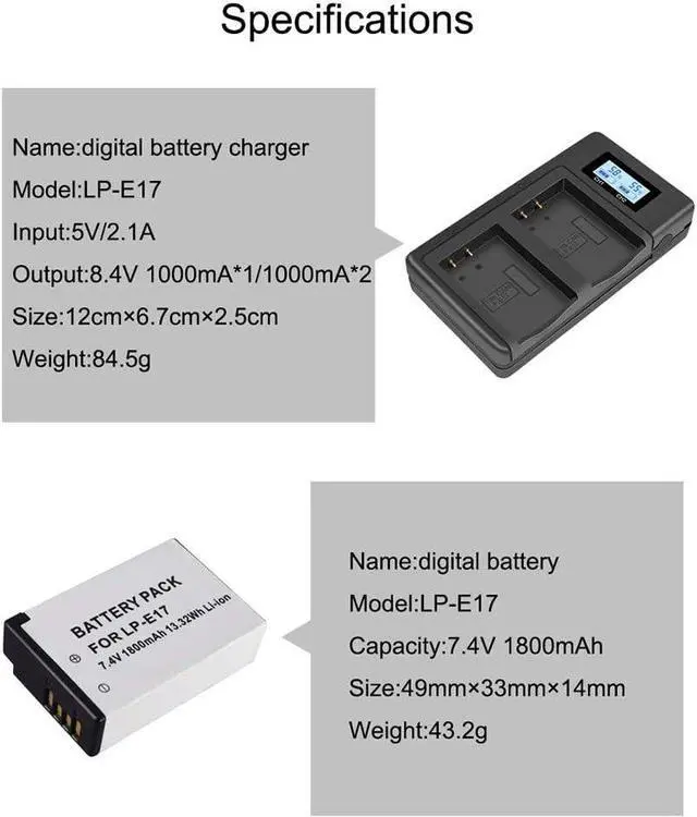 Charging Time: 2-Pack LP-E17 1800mAh batteries only need 1.8 hrs