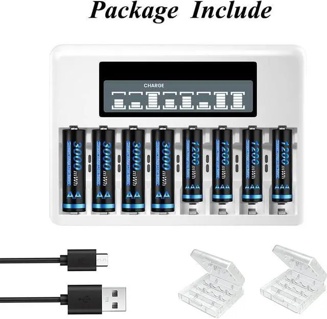*High Capacity: Packed with 1.5V 8*1200 mWh AA lithium rechargeable batteries with Micro USB Cable with 1.5V Battery case, and 1.5V LCD battery charger.
