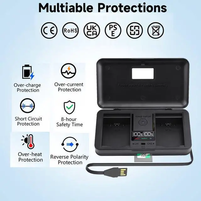Multifunctional Smart LCD DMW-BLF19/DMW-BLF19E camera battery charger with 2 independent card slots