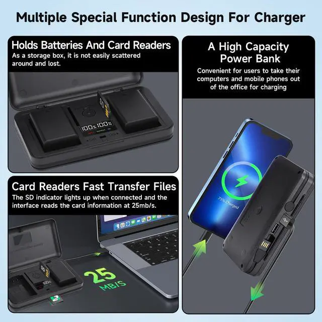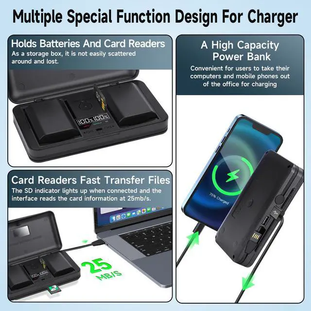 Multifunctional Smart LCD for NB10L camera battery charger with 2 independent card slots
