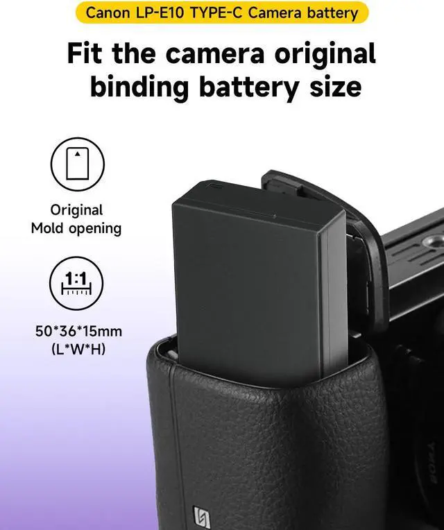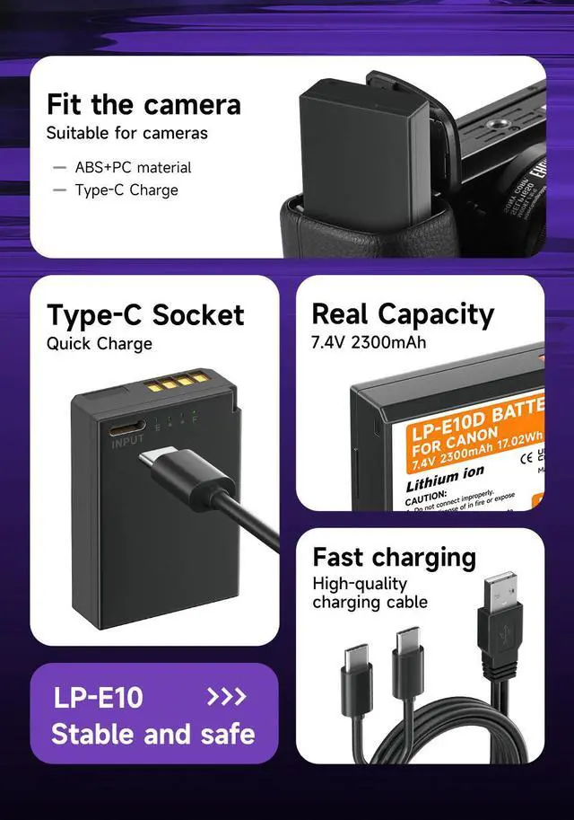Multiple Charging Options: The LP-E10 USB-C Rechargeable Camera Battery can be charged from a power bank, power strip, car charger or other dedicated charger. Quickly charge the battery by connecting to a portable charger or wall charger using the supplied USB Type A to Type C charging cable. Also compatible with the original charger battery and charger sets
