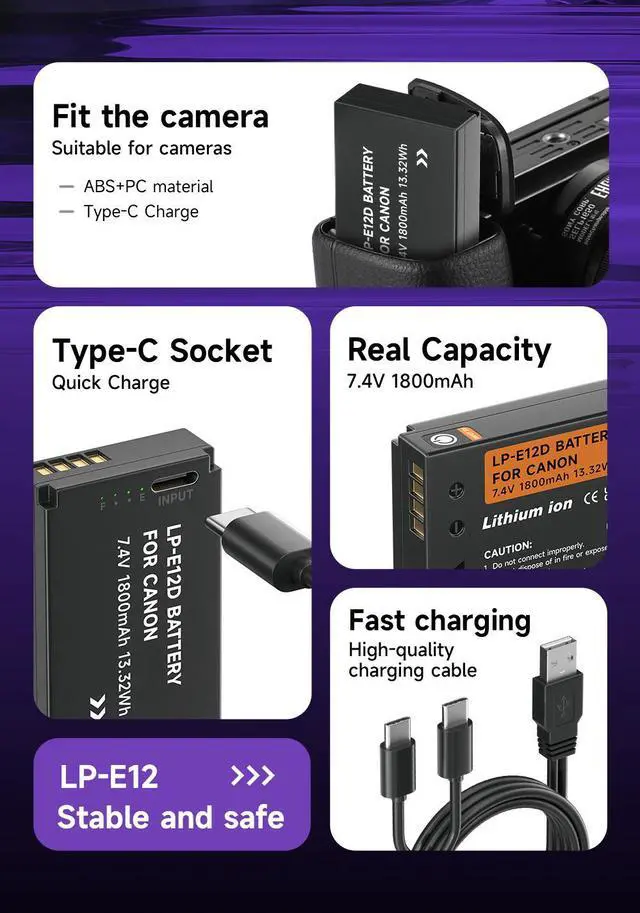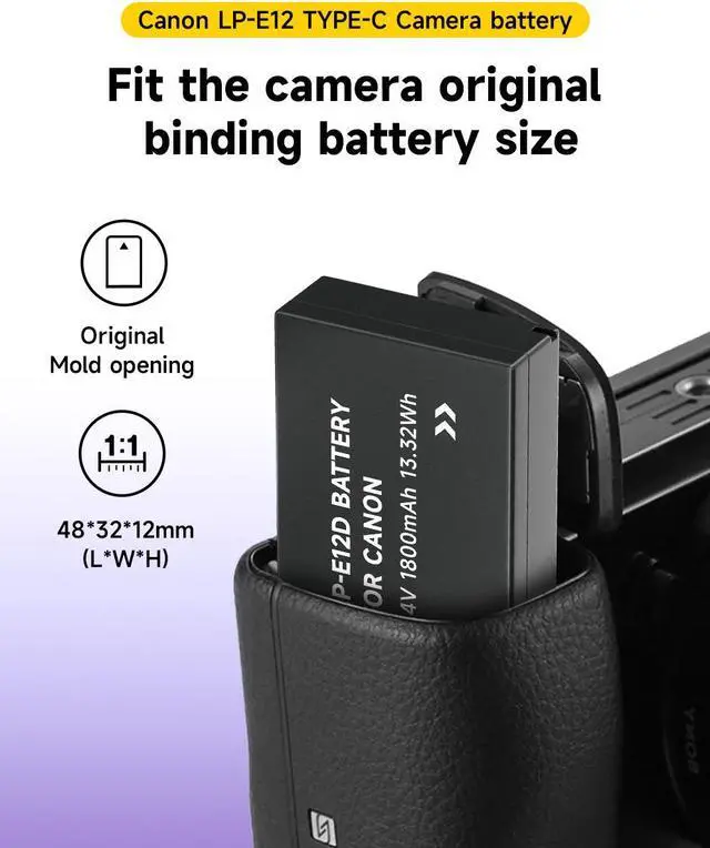 Compatible Model: LP-E12 LP E12 Battery fully compatible for Canon EOS-M, EOS M2, EOS M10, EOS M50, EOS M50 Mark II, EOS M100, EOS M200, SX70 HS Cameras