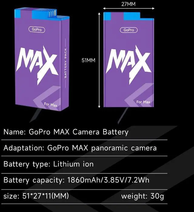 This Gopro Max battery has passed the FCC CE UL CUL ETL GS certification,Over-Heated, Over-Charge, Over-Voltage, Short-Circuit protection, multiple safety features that work together to provide ultimate protection and performance for your devices.