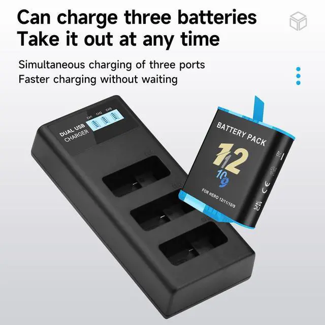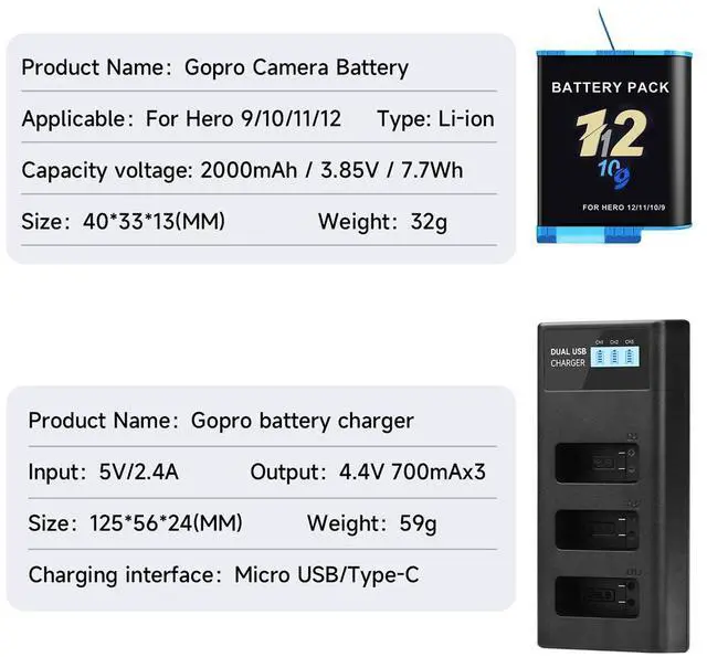Model:Gopro Hero 9 Black-Hero 12 Black rechargeable battery with charger