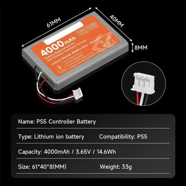 This PS5 replacement battery has passed the FCC CE UL CUL ETL GS certification,Over-Heated, Over-Charge, Over-Voltage, Short-Circuit protection, multiple safety features that work together to provide ultimate protection and performance for your devices.