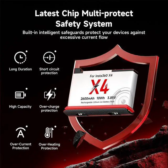• Perfect FitSame chip replacement batteries are designed for Insta360 ONE X4 Action Camera.