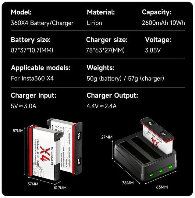 Model:360 X4 replacement battery with charge hub