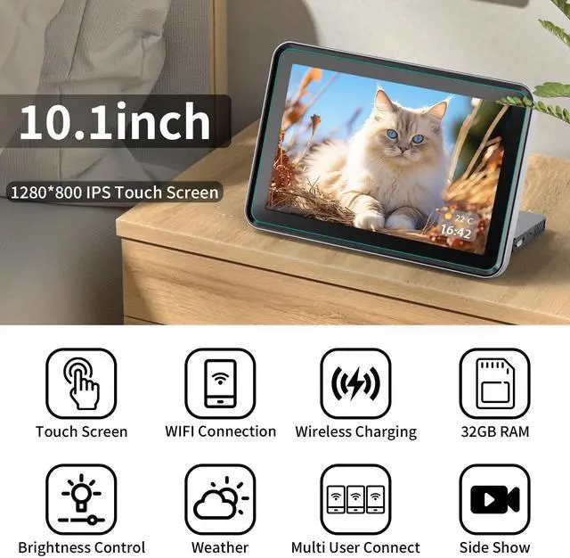 Vivid Display: Features a 10.1-inch IPS HD touch screen with 1280*800 resolution, offering a clear visual experience from any angle and preserving photo vividness.