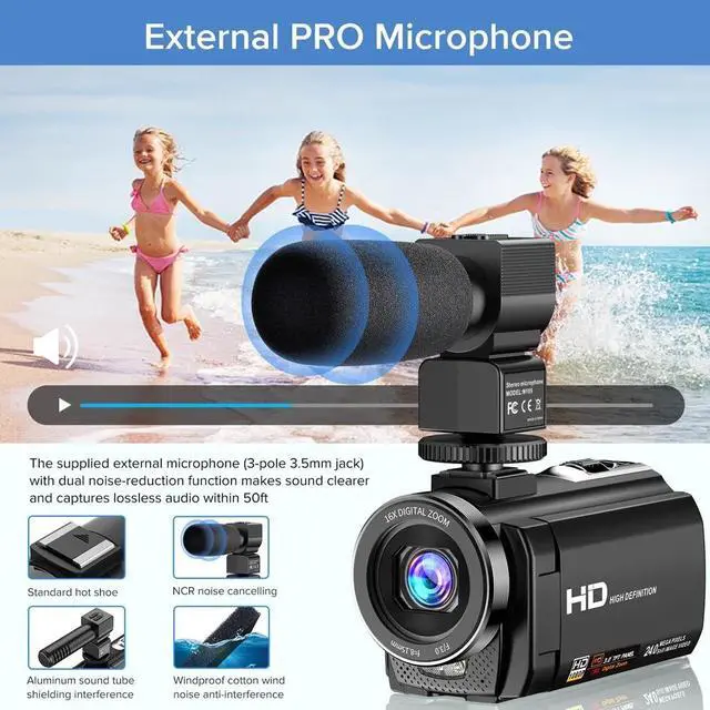 • Audio Enhancement: Features both built-in and external microphones to improve sound recording volume and reduce noise.