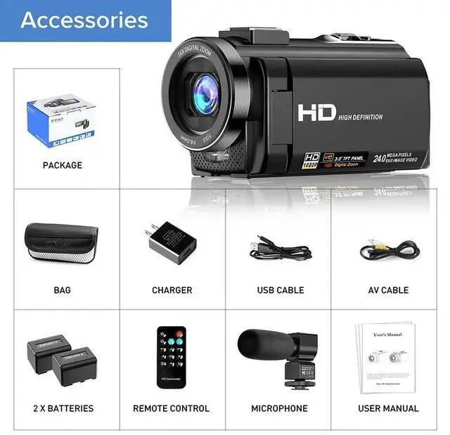 Convenient Accessories: Comes with a remote control, extra battery, charger, lens hood, HDMI/USB cables, and a DV bag for easy operation and storage.