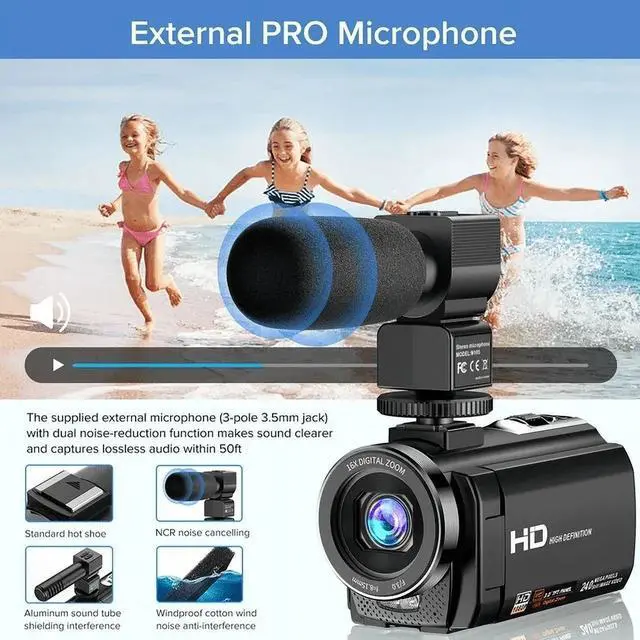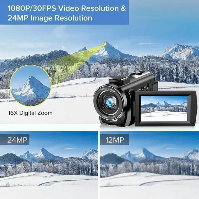 Ultra HD Quality: This camcorder captures videos in 2.7K ultra HD resolution at 30FPS and photos with a 36 MP sensor, ensuring vivid and clear images.