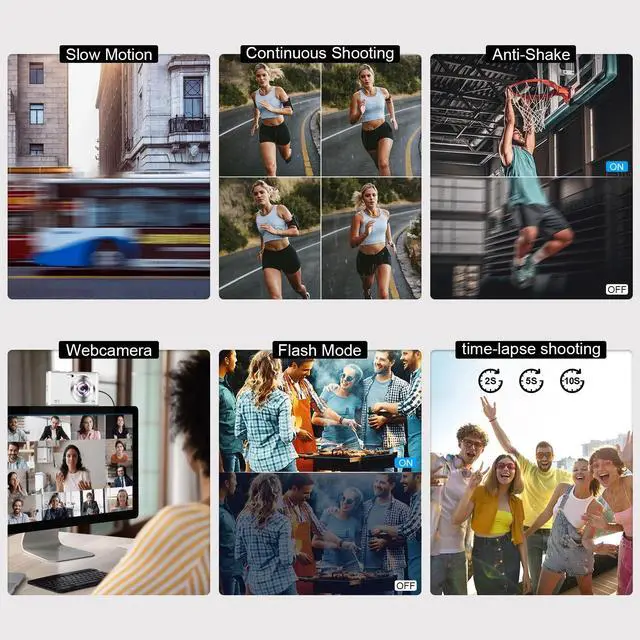 5. Multiple Shooting Modes: Includes 9 scene modes, continuous shooting, time-lapse, slow motion, and LED flash for low-light conditions.