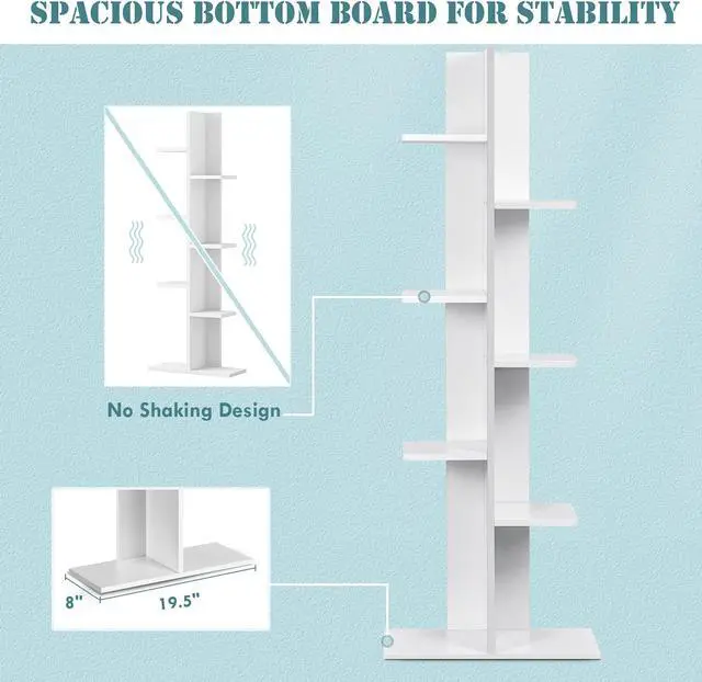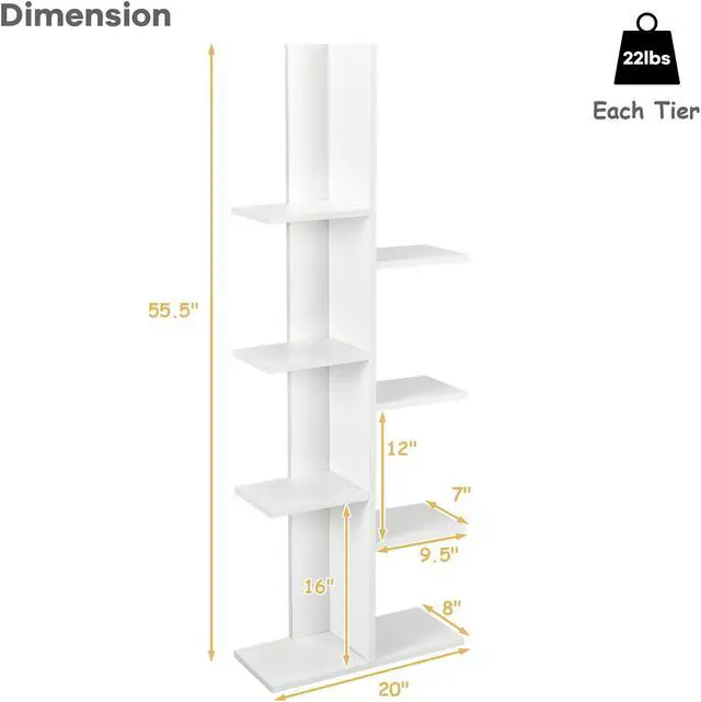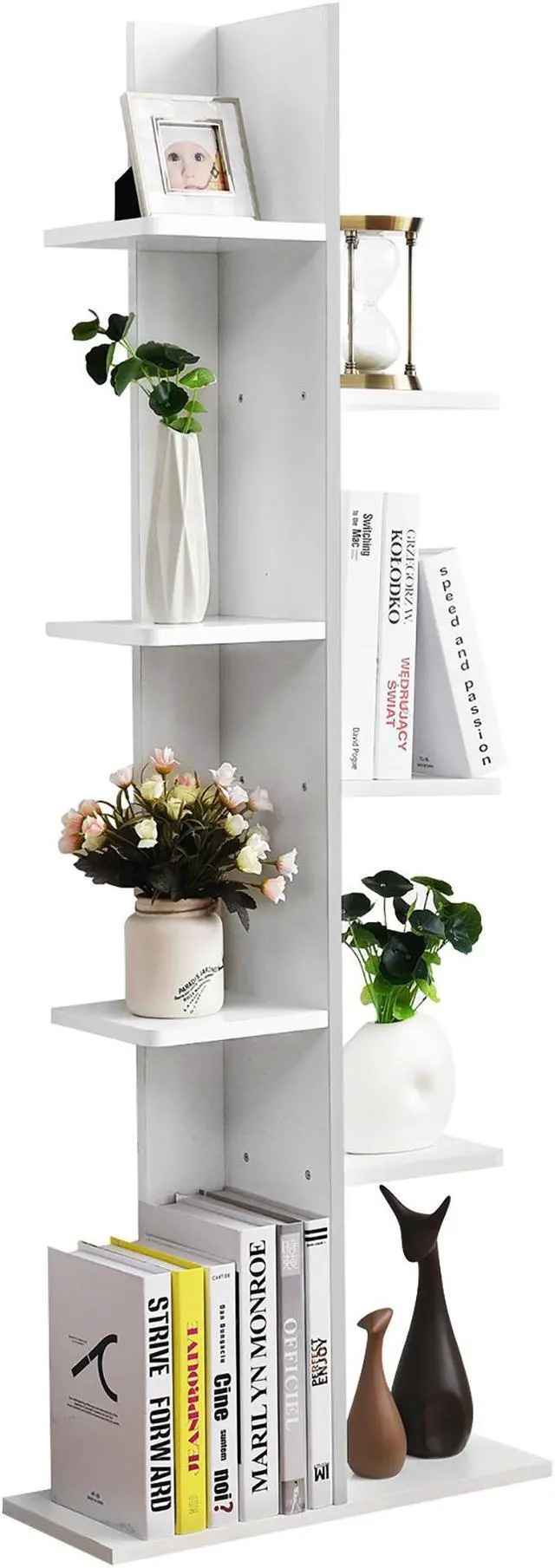 This elegant 7 tier open concept display shelf with modern open concept design and sturdy construction, is very stable and sturdy .The zig-zag style fixed storage shelves not only can decorate your room ,but also can display your favorite decorative items. You can place it in your living room, bedroom ,office etc. It is a good ornament that let your room full of fashion sense.