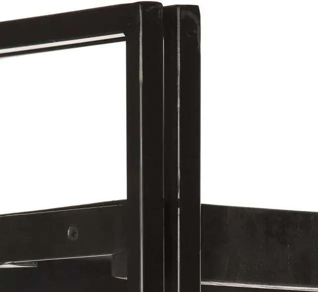 Material: Solid rough mango wood with a black stain finish, powder-coated steel
