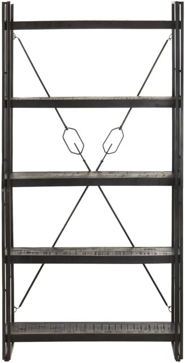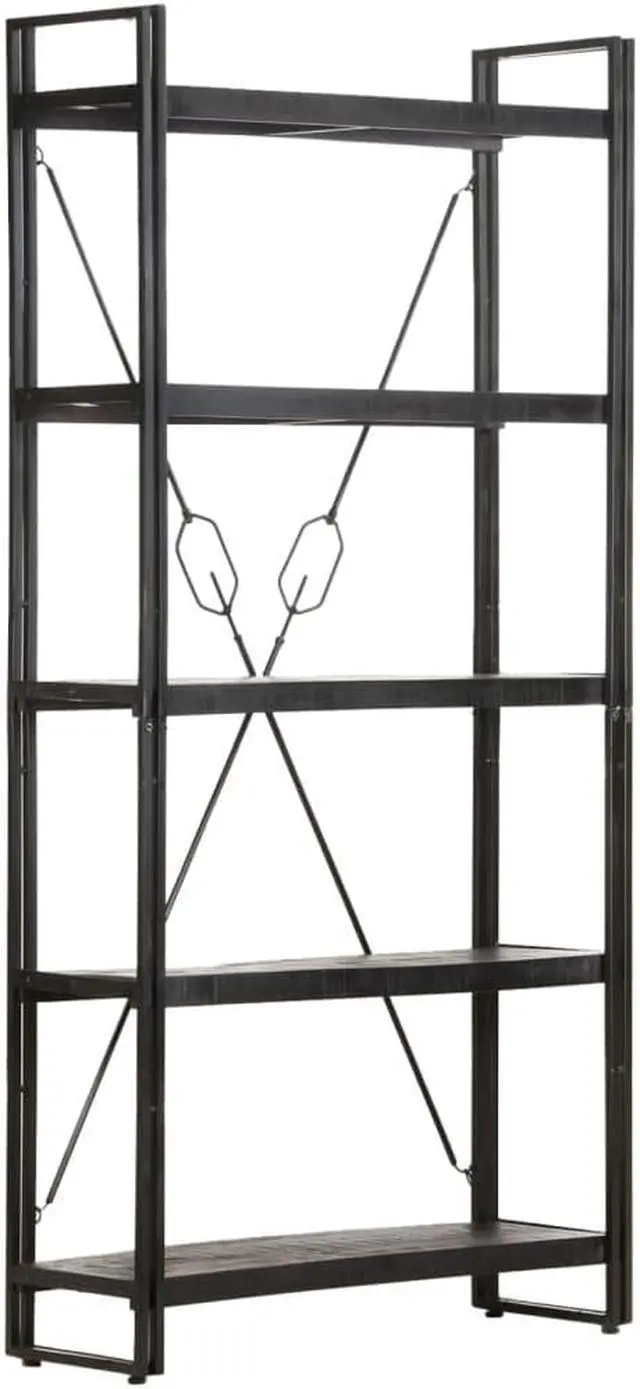 Add a touch of industrial style to your home or office with this 5-tier wooden bookcase. This bookshelf presents an ideal solution for storing and displaying your book collection, magazines, documents, or decorative items like photo frames and collectibles. The bookcase has a sturdy powder-coated steel frame which gives it an industrial look. The shelves are made of solid rough mango wood, which is stable, durable and beautiful, and the craftsmanship adds to its spectacular retro style. Every step of the process is carried out with the greatest care, be it polishing, painting or lacquering.
