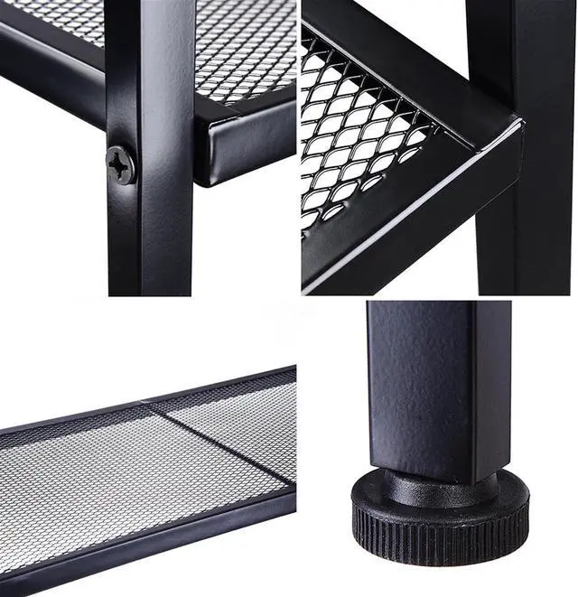 You can adjust the foot pad to make the shelf stable on the unstable ground. And this plastic foot pad can protect the ground from being scratched.