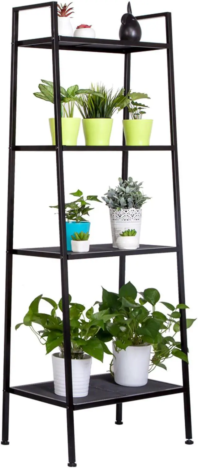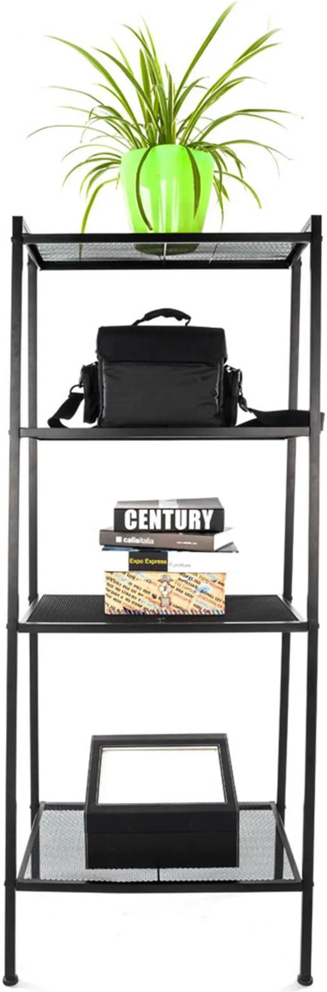This Hannord ladder four-shelf bookcase combines style and functionality to create a modern home furnishing ideal for use in living room, kitchen, bedroom or any other space to display and store items, with wild black color, attractive and simple appearance, this bookcase will well match with your furniture in your home.