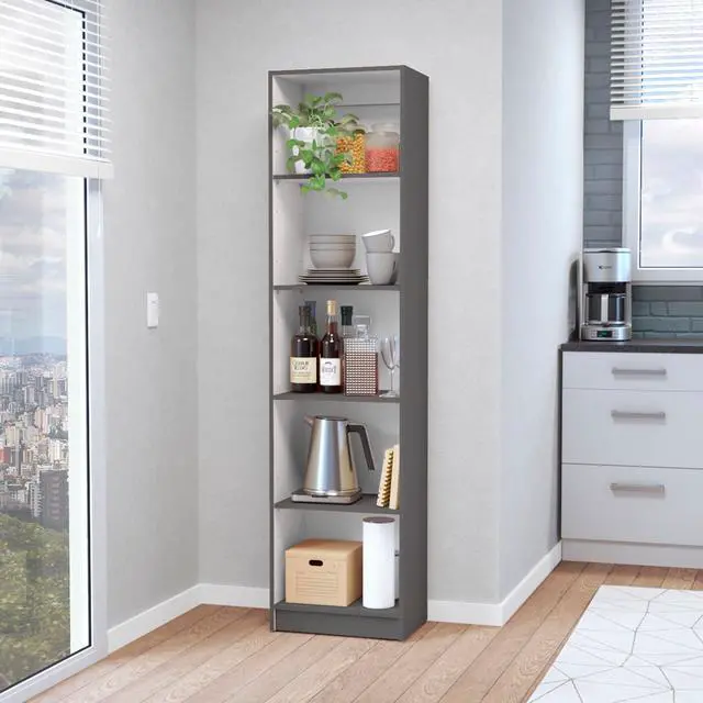 • FM FURNITURE Sutton Slim Bookcase with Modern 5-Shelf Design, Matt Gray / White