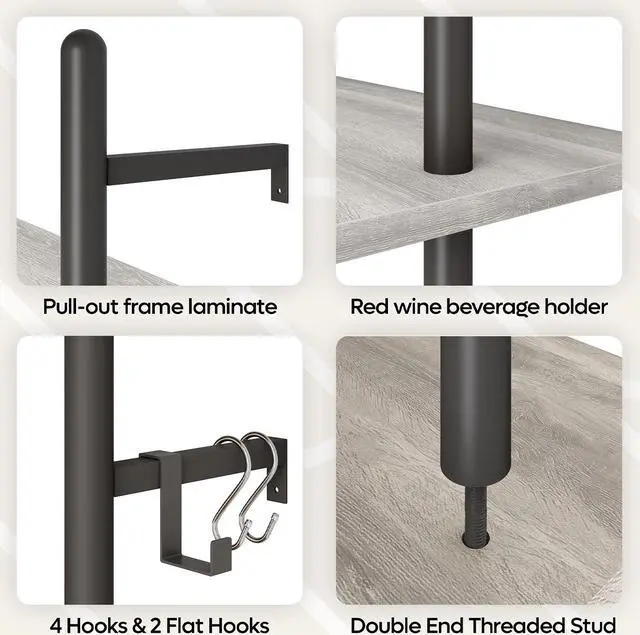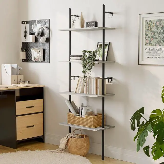 Sturdy & Stable: The wall bookshelf is made up of sturdy black metal frames and 4 durable particleboard, each panel can hold 20 lbs. It is bolted to the wall to ensure stability. Additional 2 hooks can be used to hang some small things.