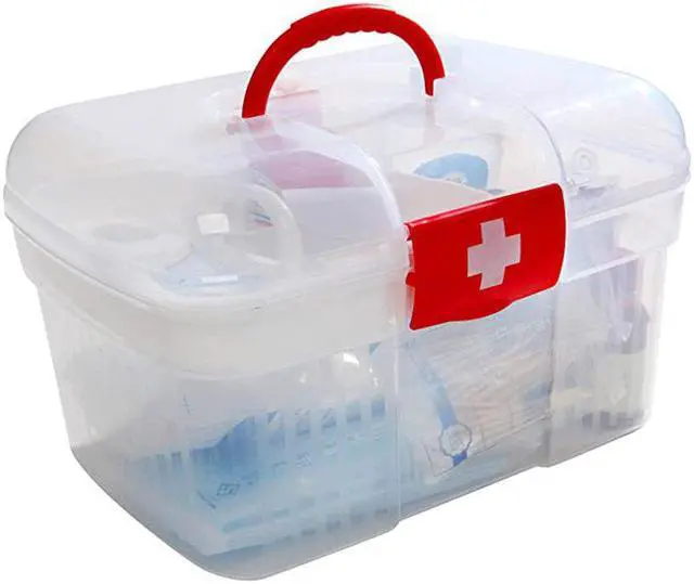 Features: Portable, sturdy translucent first aid container. Removable includes sorting and separating tray. High-quality and durable plastic material. Approximate size: 27cm*18cm*16.5cm