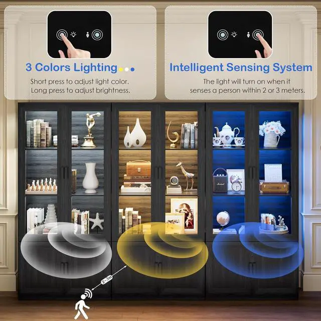 Featuring 3 color LED lights with adjustable brightness, this curio cabinet will add a touch of elegance and sophistication to any space in your home.