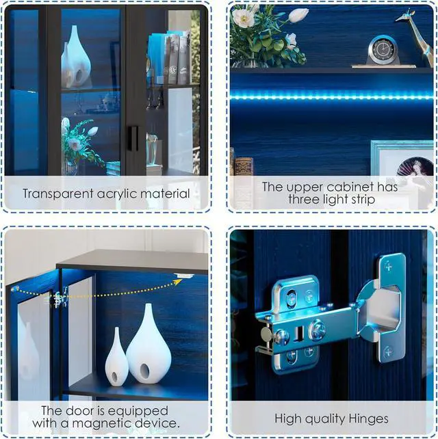 The storage cabinet door adopts a strong magnetic lock to ensure that the door closes seamlessly, keeping your items safe and dust-free. The hinge with cushioning effect prevents the door from being closed vigorously to avoid impact on the items.