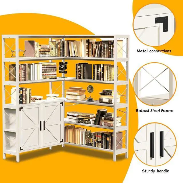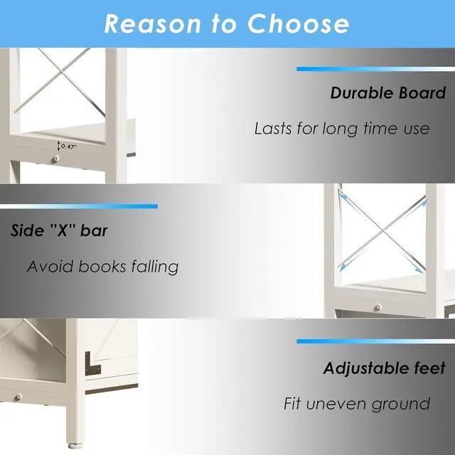 QUALITY BOOKCASE with ADJUSTABLE FEETThis home bookshelf perfectly combines the hard steel with the vintage looking particle board, simple, sturdy, and functional. You can put it in your living room, study room, bedroom, and office. BookShelves come with adjustable feet so that you can make mild adjustments to fit different level ground. Choose Wildhome Bookcase, make your space neat, tidy, and also in great style.