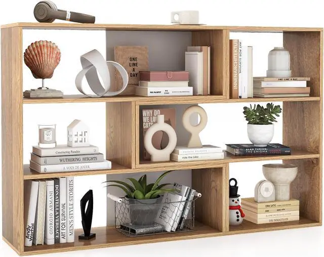 6 Spacious Shelves: The bookcase helps you maintain an organized and functional space. Featuring 6 open shelves of varying sizes, this bookcase provides versatile storage options for books, potted plants, photos, and decorations.