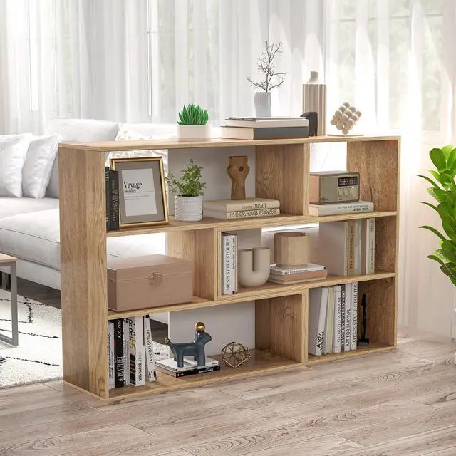 Decorative Display Shelf: Natural wood grain exudes classic charm and enhances the ambiance of any room. In addition to its decorative value, this versatile bookcase can be used as a display shelf, room divider or storage organizer.