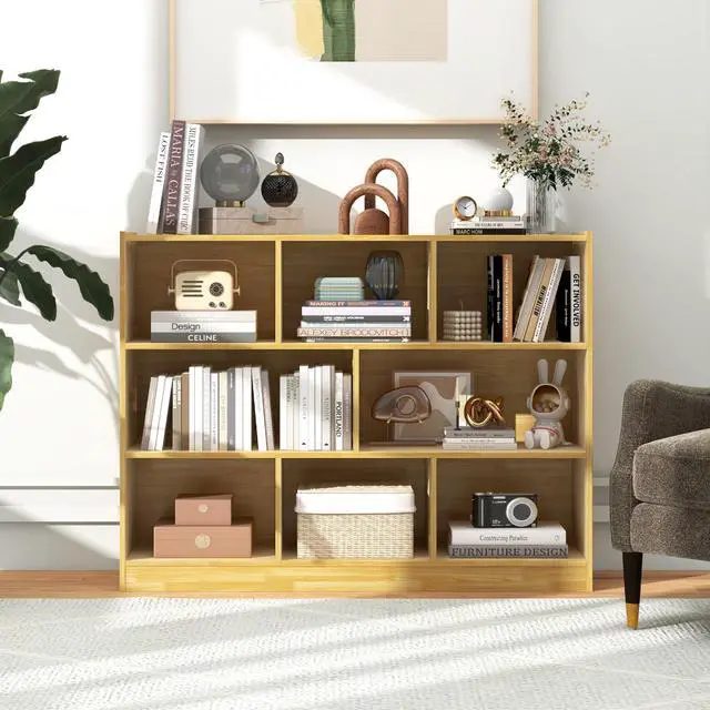 Large Storage Capacity: The freestanding 3-tier bookcase boasts a wide cabinet top and 8 cubes, offering ample storage space to organize your books, ornaments, photos, potted plants, baskets and more. In addition, the open design ensures that everything is within reach.