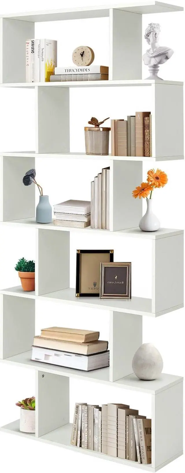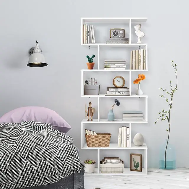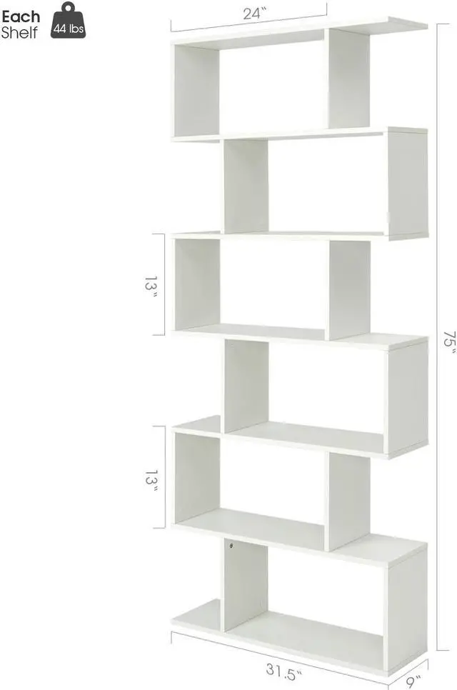 This 6-tier S-shaped bookcase is an eye-catching piece of modern furniture that can be coordinated with your other home decorations.