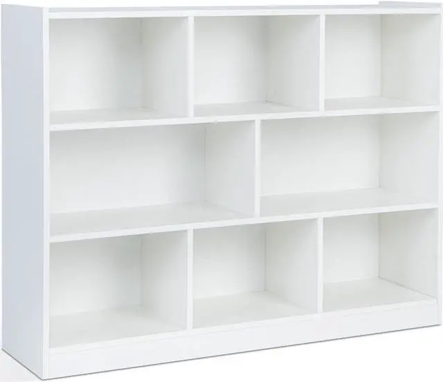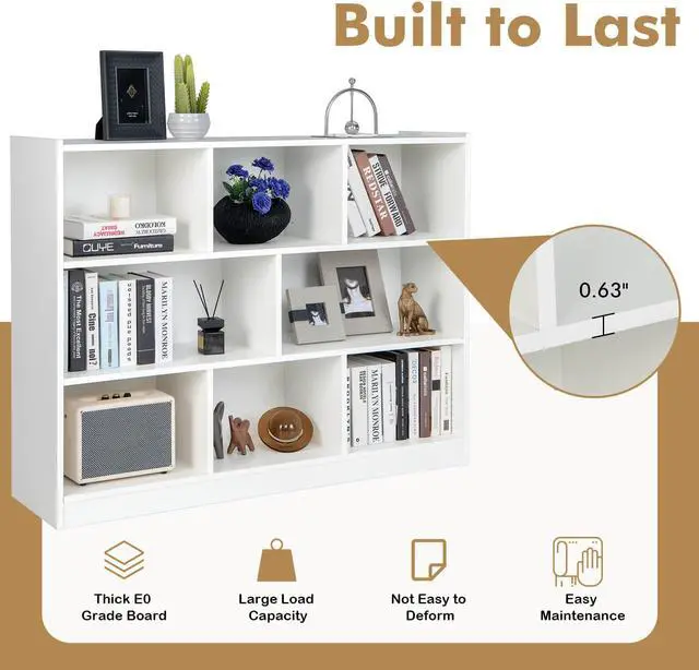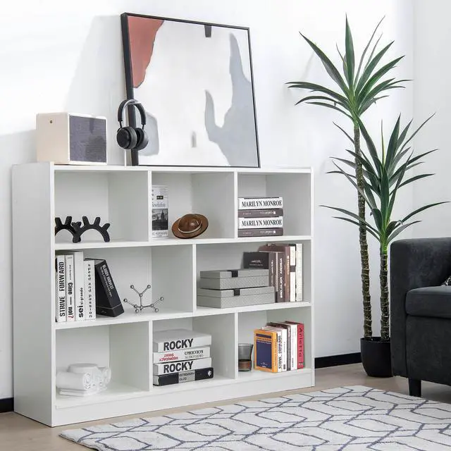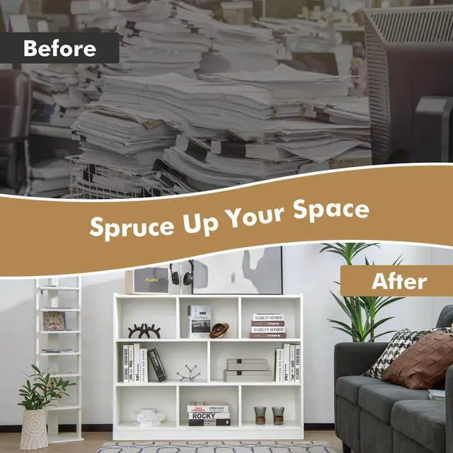 Large Storage Capacity: The freestanding 3-tier bookcase boasts a wide cabinet top and 8 cubes, offering ample storage space to organize your books, ornaments, photos, potted plants, baskets and more. In addition, the open design ensures that everything is within reach.