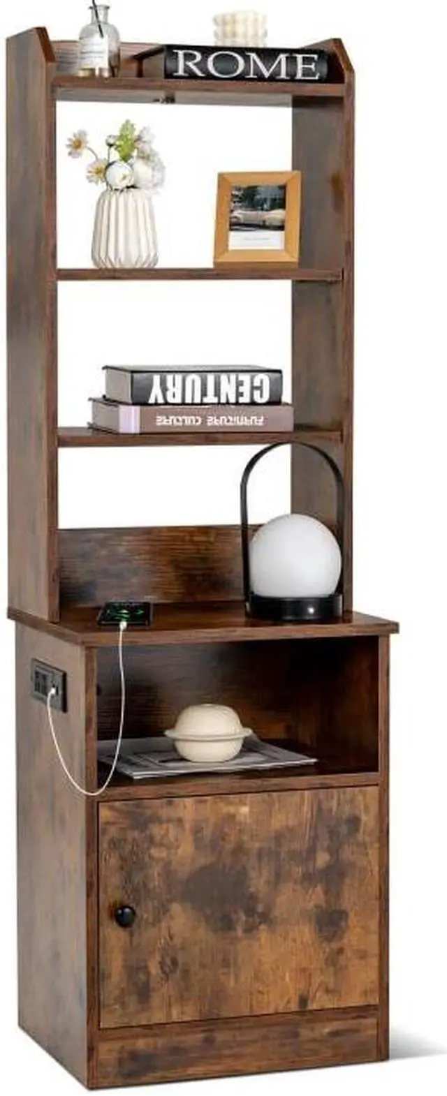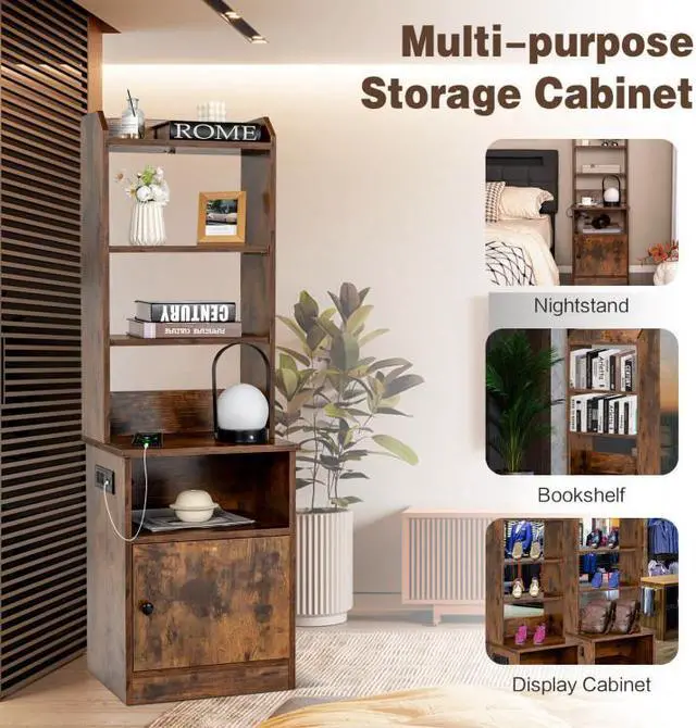 Convenient Bedside Charging Station: Not only is it a bookcase, but also a mobile charging station. This bedside storage cabinet is equipped with a built-in drain plug, so you can easily charge your phone, tablet and other electronic devices. The drain plug includes 2 120V AC outlets and 2 USB charging ports to meet your different needs.