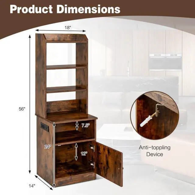 -Large storage space: 5 levels of shelves and a cabinet can hold all your daily necessities