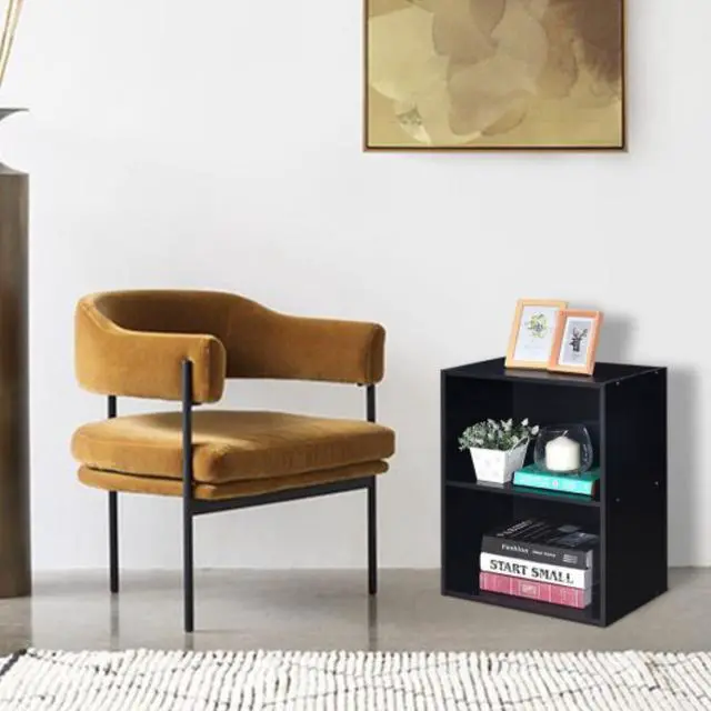 This storage cabinet has a modern stylish and elegant look that fits every space and decor in your home. With the storage cabinet with a 2-layer large open storage space you can store your books CDs DVDs vases photo frames decorations and collectibles. The most important thing is that it is composed of MDF veneer material and composite wood structure. The base is stable and the structure is firm. Therefore its load-bearing capacity is very strong and can be used for a long time. Due to the smooth surface you can easily wipe the stain with a damp cloth. And it's fixed with screws so you can assemble it quickly and easily.
