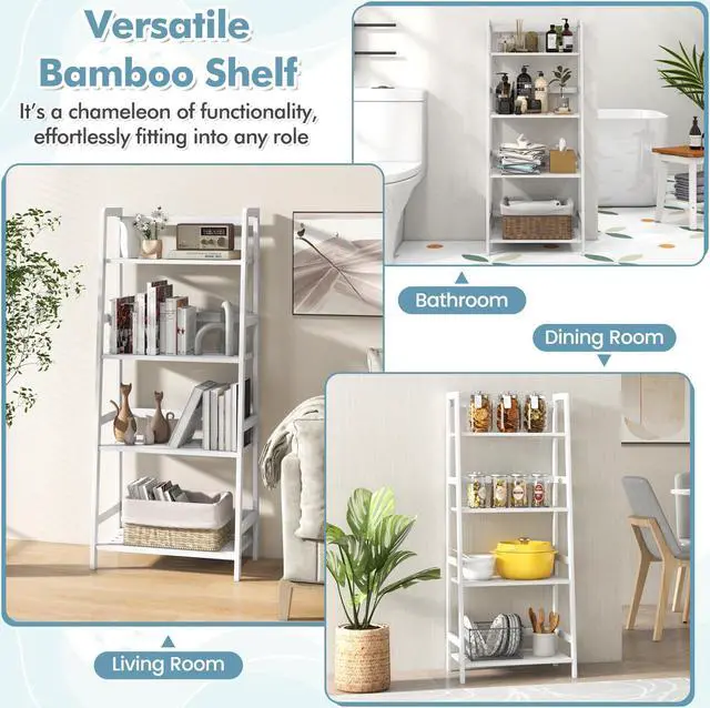 Stable Structure and Solid Bamboo: The bookshelf is made of natural bamboo and features a ladder shape, which ensures the solidness and stableness. It does not wobble or fall easily while in use. You will like to use it.