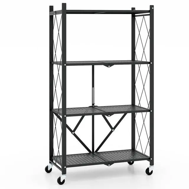 Space-saving and Foldable Design: The 4-tier storage rack can be folded flat when not in use. With the folded size of 13.5" x 3.5" x 49.5" (L x W x H), the storage shelf is particularly useful in homes or work spaces with limited area. Unfolded Size: 28" x 13.5" x 49.5" (L x W x H).