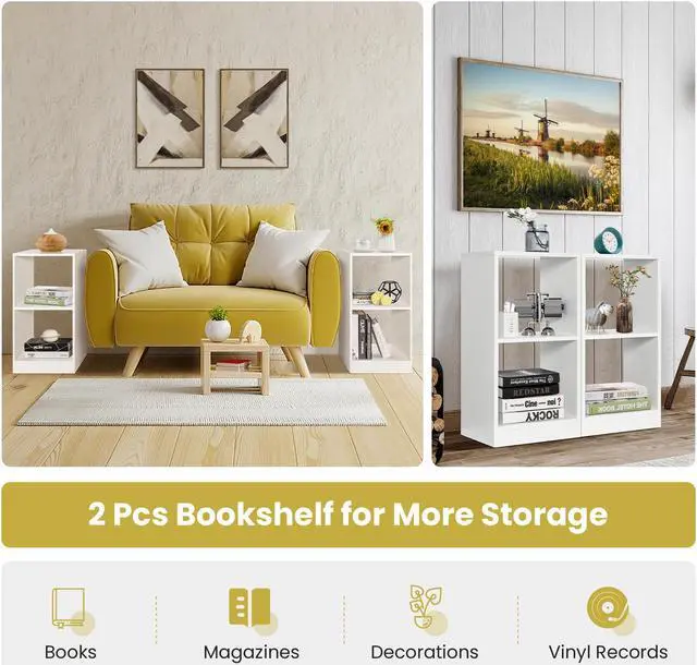 Stylish and Simple Look: This 2-piece bookshelf set has elegant colors and a modern look that matches a variety of styles of furniture. The open double storage design and the top are very convenient for you to reach your items. Providing you with storage space, this bookshelf set with minimalist lines is also fairly artistic.