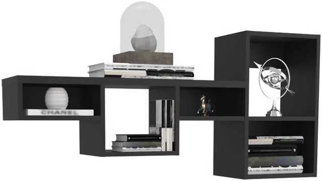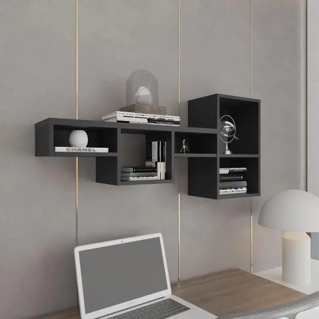 Wallshe 47" Wide 7-Tier Wall Shelf, Cube Shelf Modular Shelf for Living Room, Home office, Bedroom Black