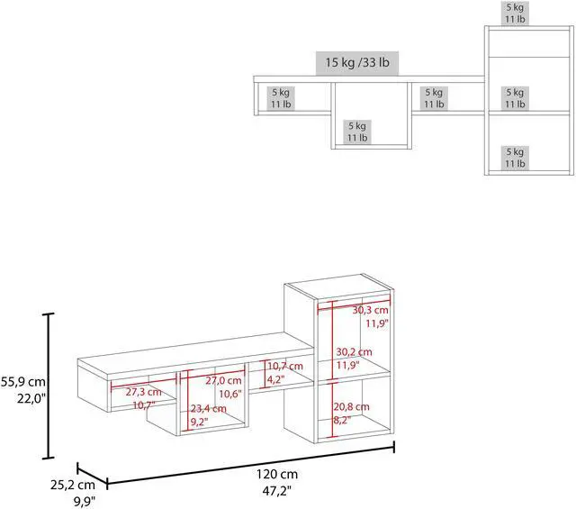 Generous Dimensions: Standing at 22" high, 47.3" wide, and 10" deep, it offers ample storage without overwhelming your space