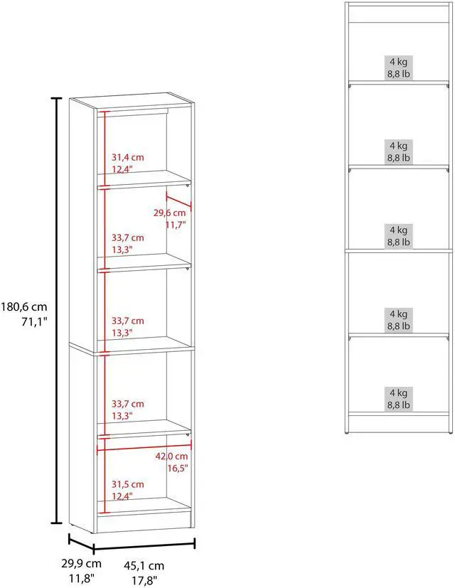 Offers five open tiers to maximize vertical storage space, perfect for displaying books, decorative items, or organizing home essentials