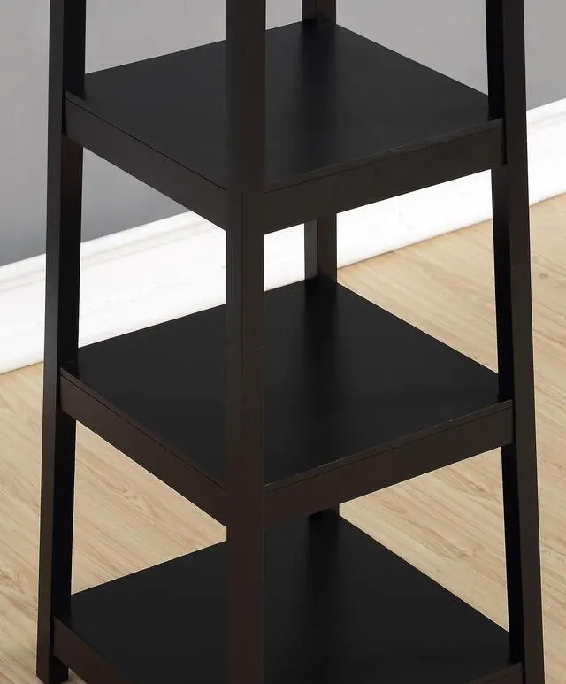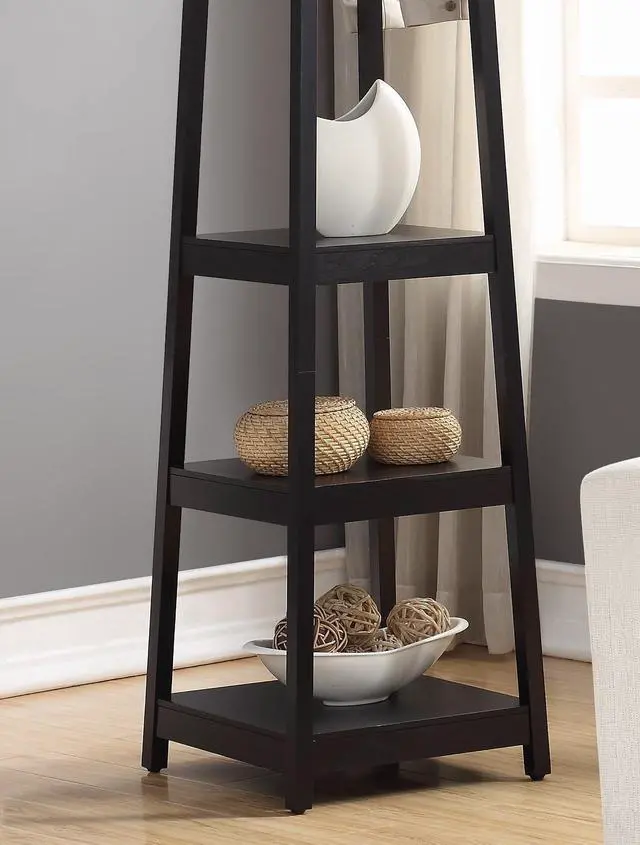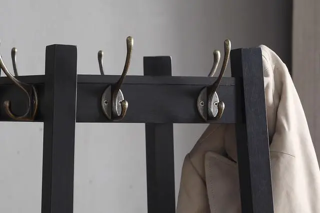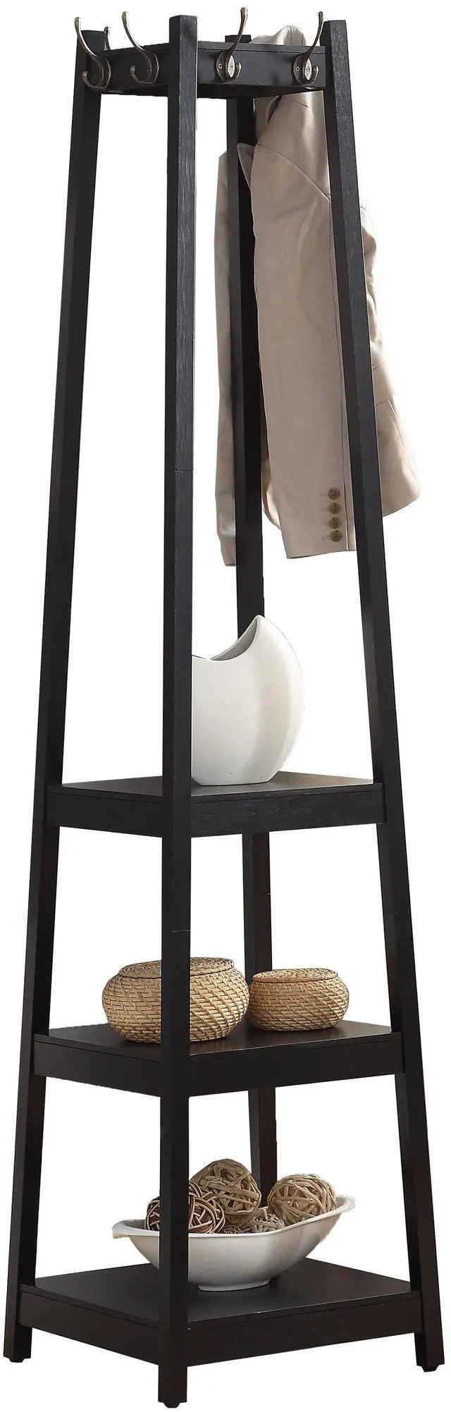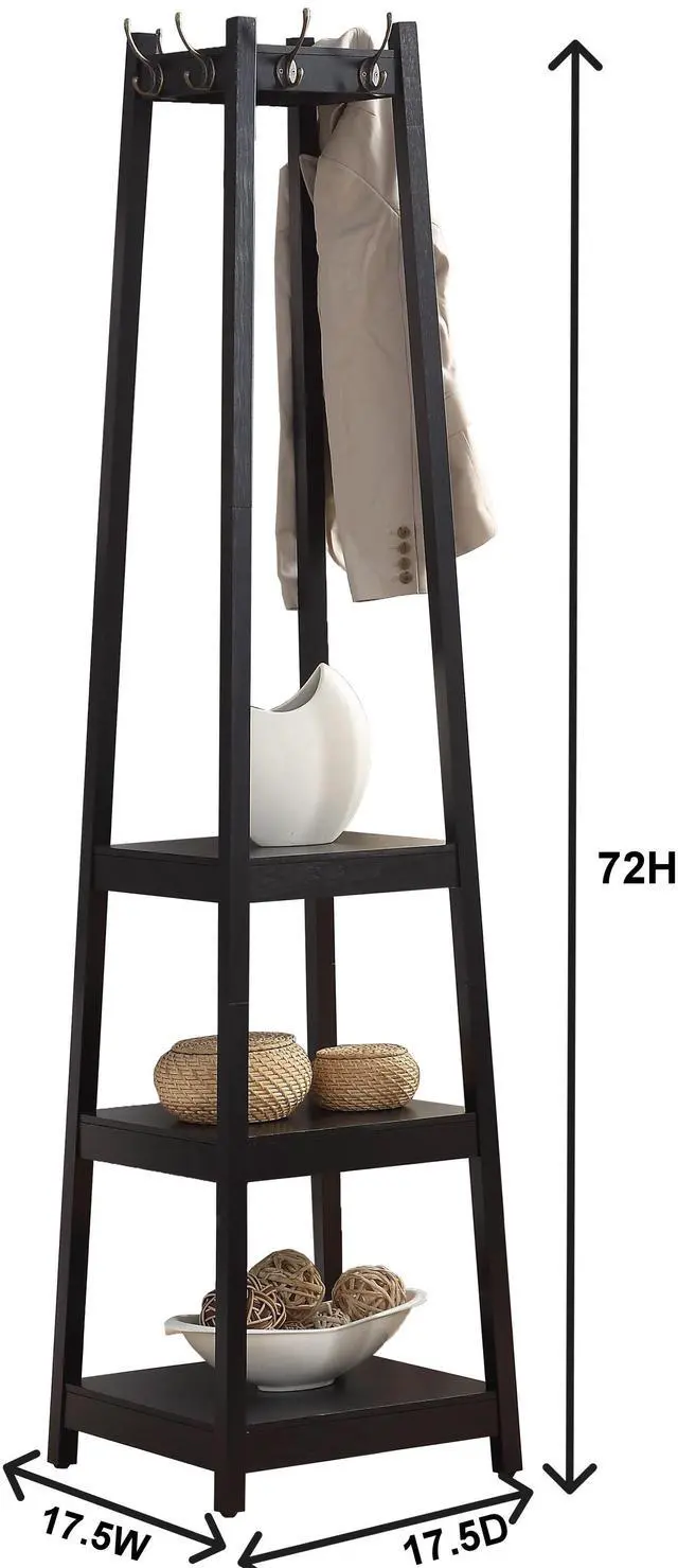 Black Finished Wood Coat Rack with 3-tier Storage Shelves.